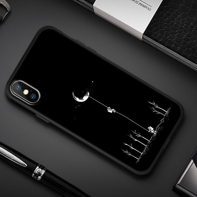 Features 7: Black Silicone Couple Cartoon Phone Case For iPhone XR X 7 Case